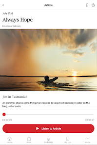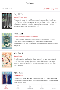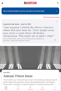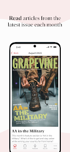 The Grapevine app is all things Grapevine right on your smartphone. The monthly magazine, the articles archives, the podcast, the daily quote, an enhanced sobriety calculator, and the AA events calendar. App-exclusive features include a spiritual maintenance checklist and the ability to share articles, and your own experience, strength, and hope with other Grapevine app users. The app allows for more content each month too. Service-oriented members will find easy ways to be a part of the AA Grapevine Community in our Get Involved section. You’ll be able to read Grapevine anonymously wherever you go. You can also listen to each month’s articles on a playlist, and listen to the podcast playlist right on the app..Photos Collection